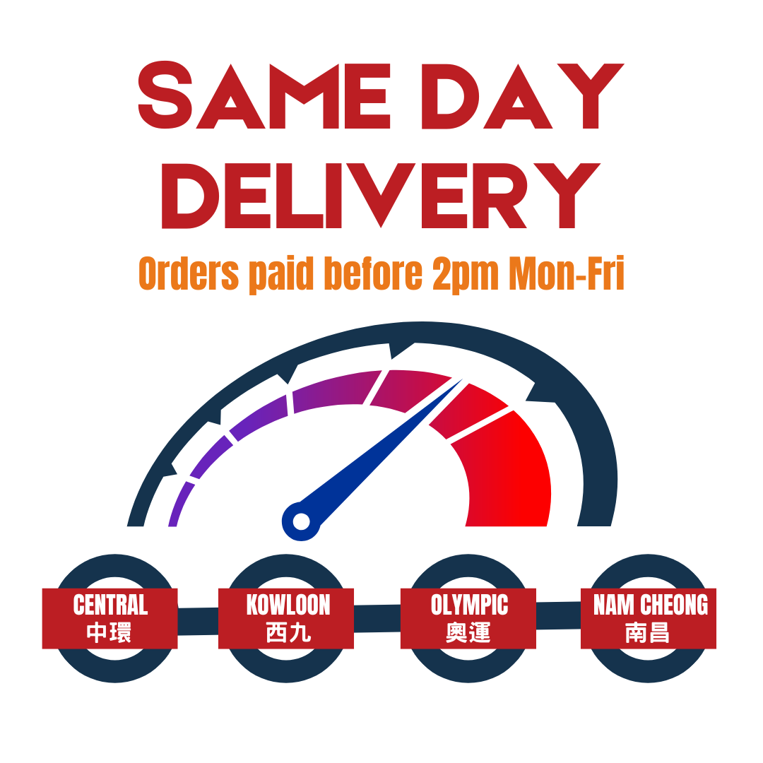 Same day delivery in Central and near selected MTR stations for orders placed before 2pm Monday-Friday (excluding public holidays), available upon request. Not applicable for online orders.