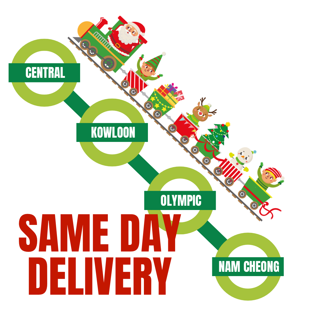 월요일-금요일 오후 2시 이전에 주문한 경우 센트럴과 일부 MTR 역 근처에서 당일 배송(공휴일 제외), 요청 시 가능. 온라인 주문에는 적용되지 않음.